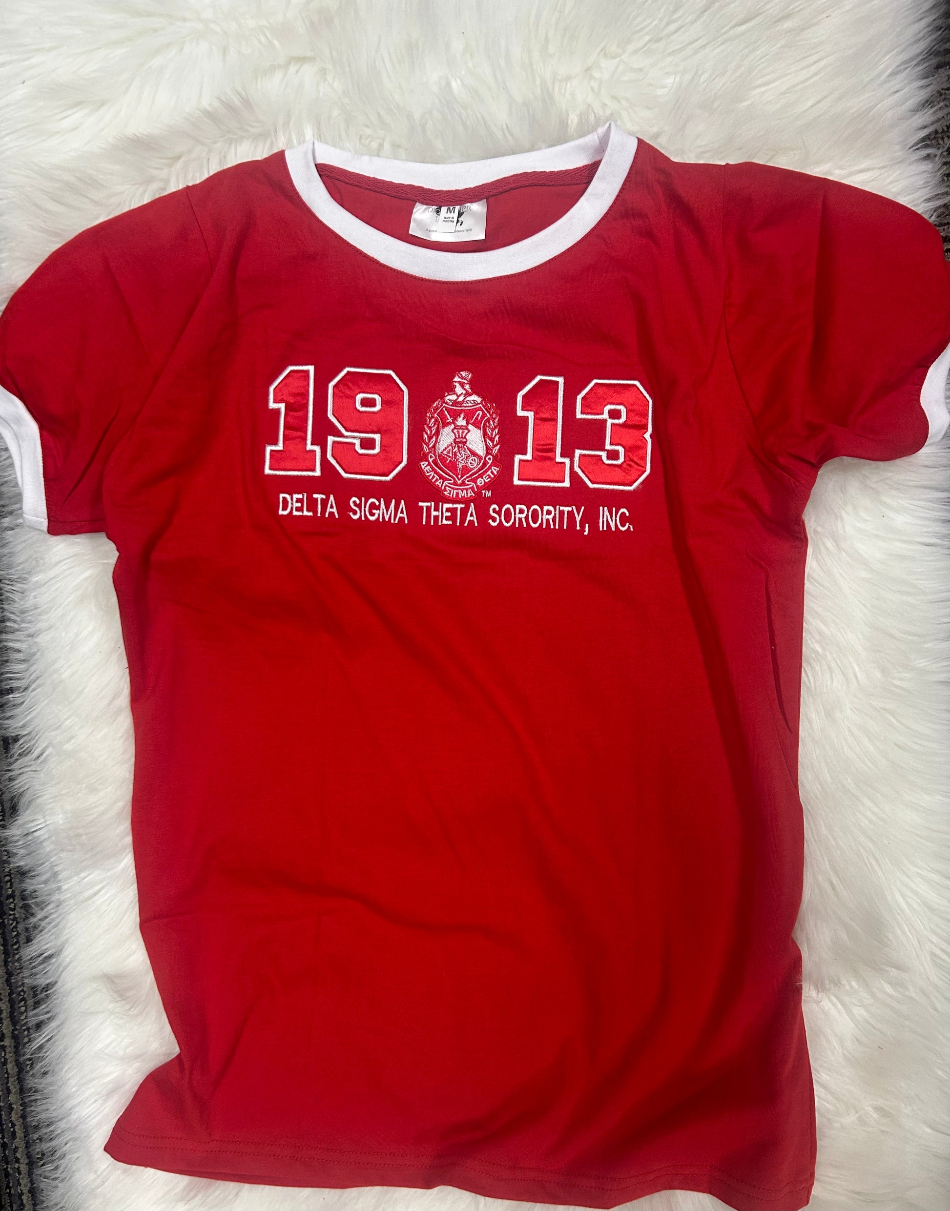 RED- Delta Sigma Theta - embroidered premium T shirt